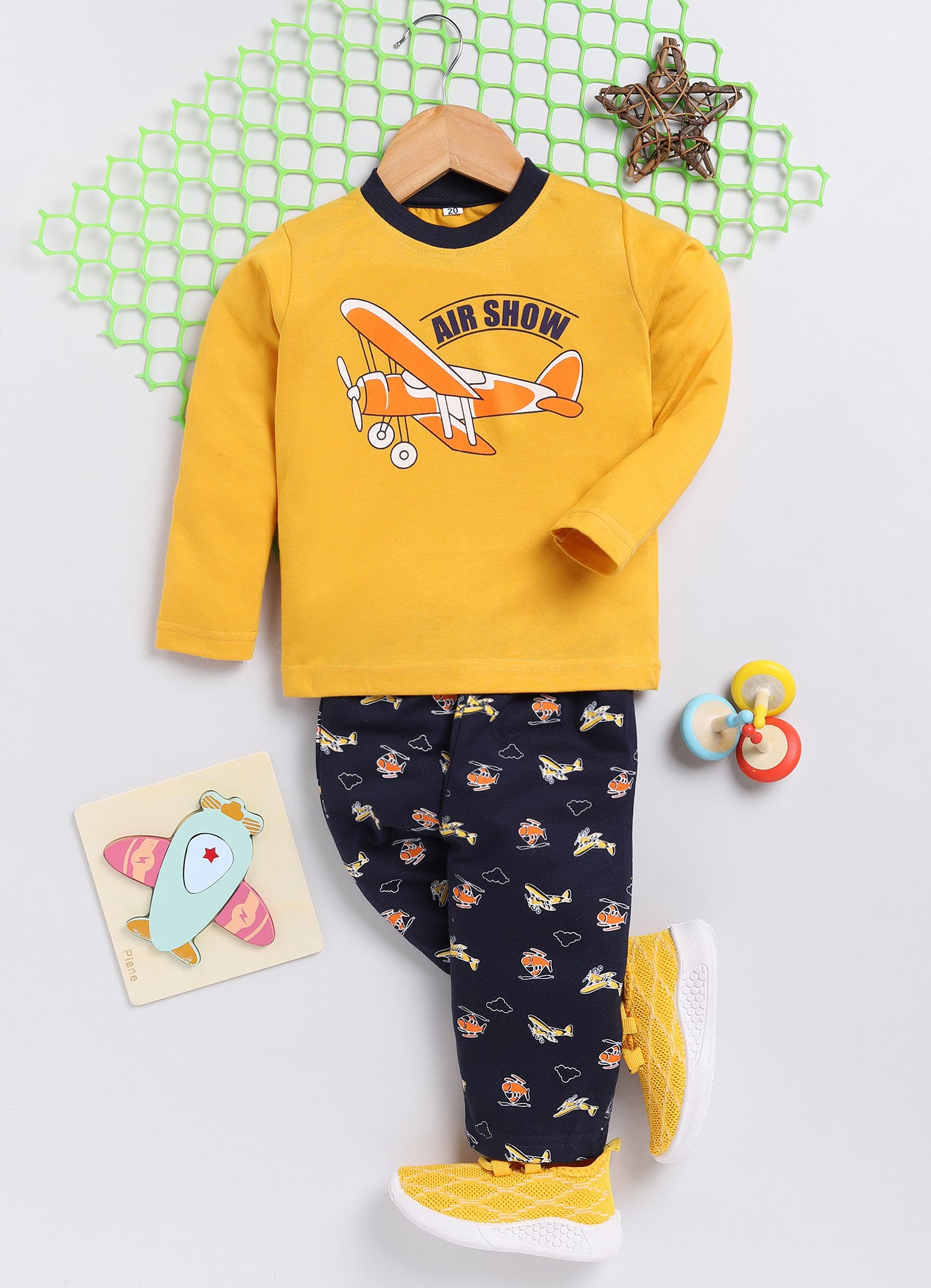 Airshow Print Cotton Sinker Nightwear Full Sleeves Clothing Set