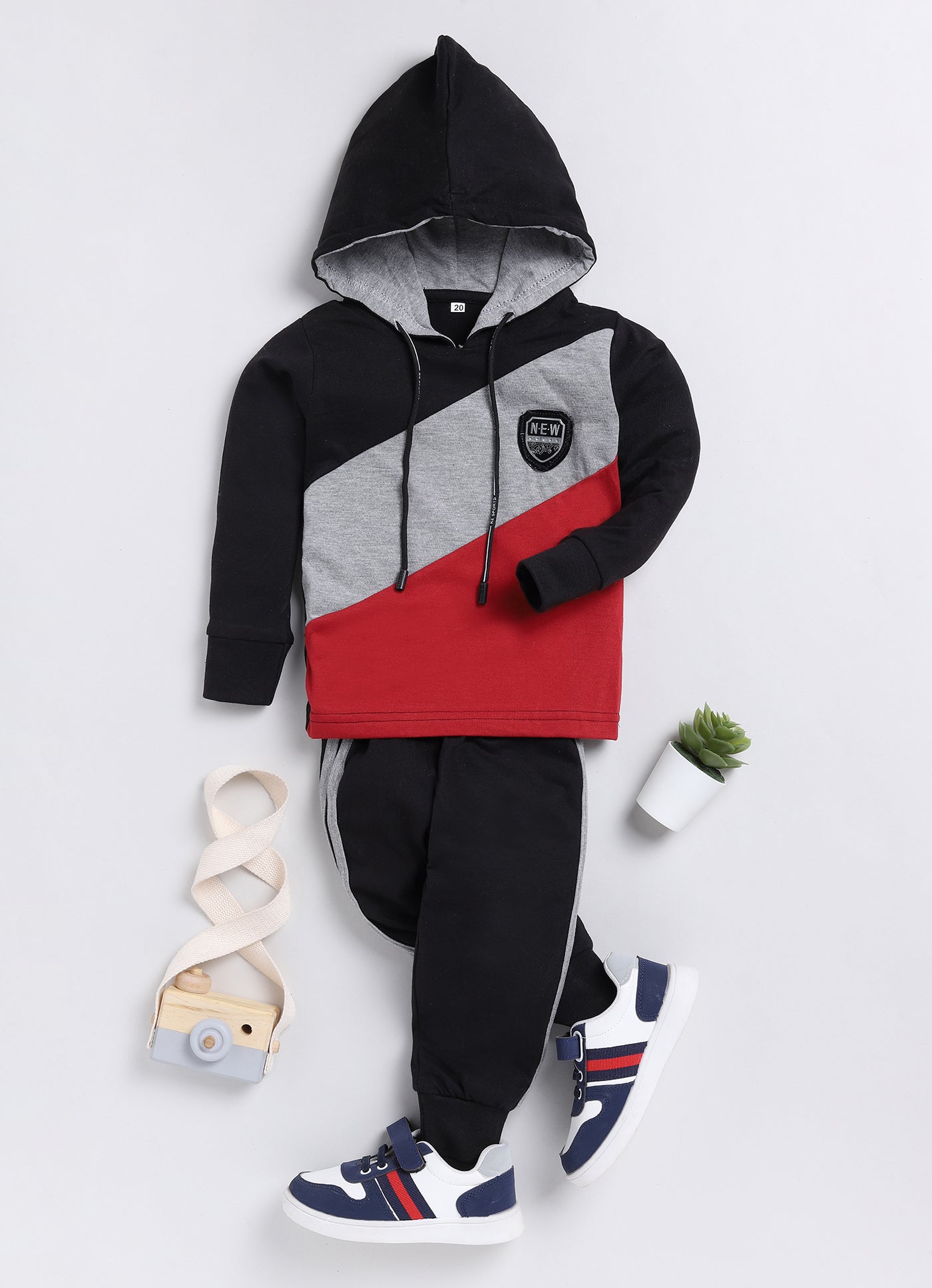 Streetwear contrast colour Cotton Sinker Hoodie & Jogger Full Sleeves Clothing Set (Black Grey Maroon)